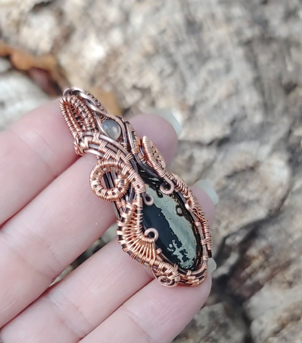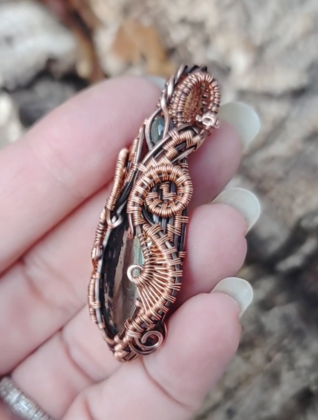 beautifully wrapped in tarnish resistant and bare oxidized copper. This handmade piece is crafted with several hours of love woven in to give it.