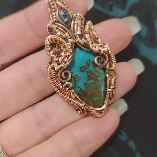 beautifully wrapped in tarnish resistant and bare oxidized copper. This handmade piece is crafted with several hours of love woven in to give it a tribal tropical look 🐙👀